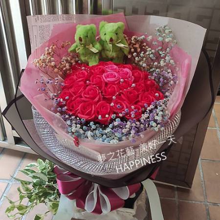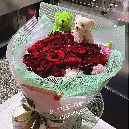A095 心想事成 玩偶玫瑰花束 生日花束