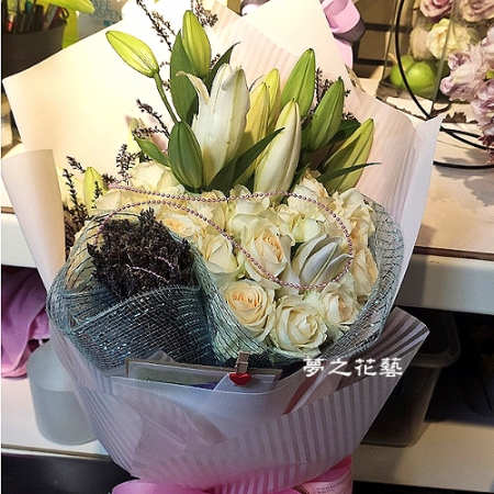 A167 真情 玫瑰百合 情人節花束 生日花束 母親節花束