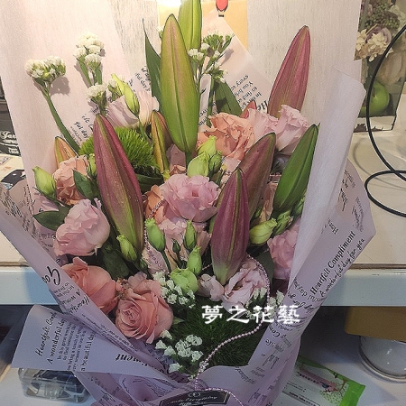 A141 等你下課 百合桔梗玫瑰花束 情人節 生日花束