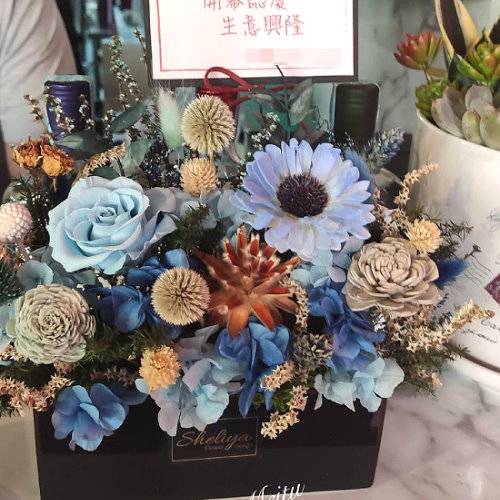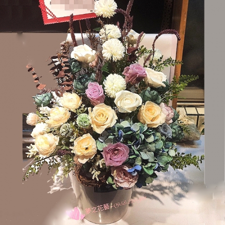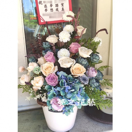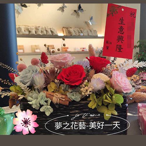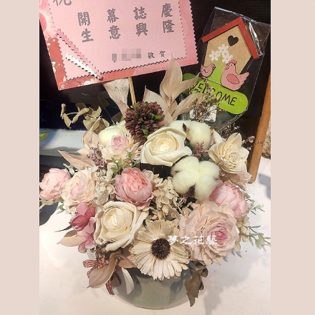 J039 時尚祝賀盆花 店面擺飾設計 乾燥花祝賀盆花 高雄花店