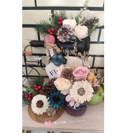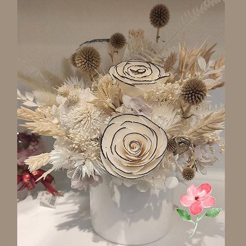 J033 豔麗乾燥花盆花 祝賀乾燥花盆花 祝賀花禮