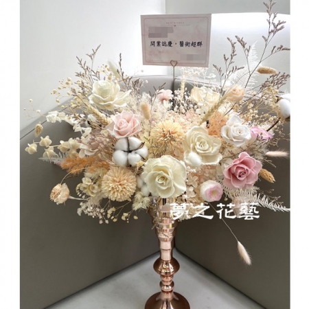 J057 時尚祝賀盆花 店面擺飾設計 乾燥花祝賀盆花 高雄花店