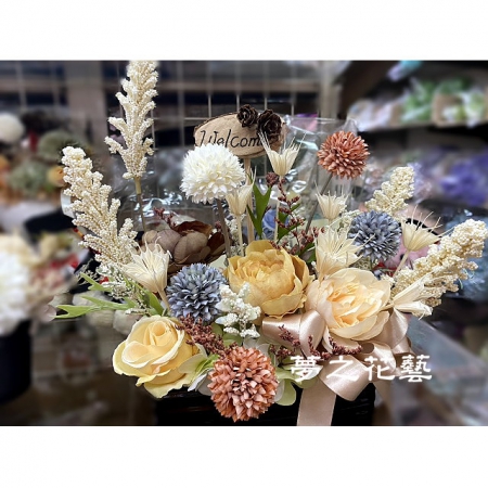J036 乾燥花店面擺飾設計 乾燥花祝賀盆花