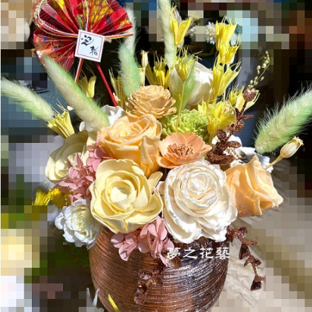 J032 財源廣進 祝賀乾燥花盆花 祝賀花禮