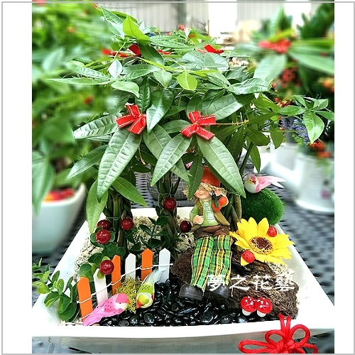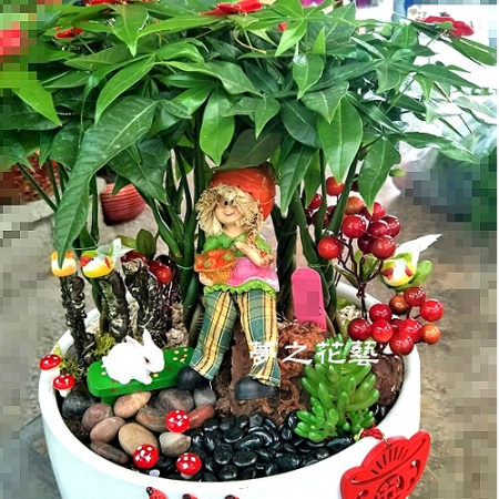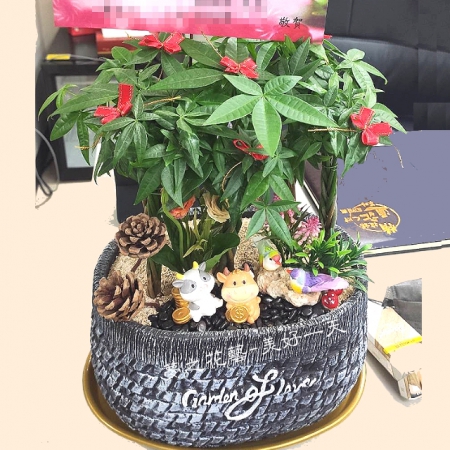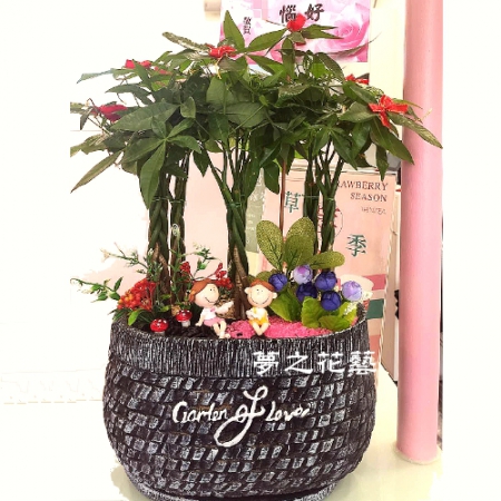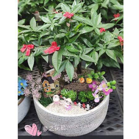 F052 發財樹組合小花園盆栽 桌上盆栽 致賀盆栽