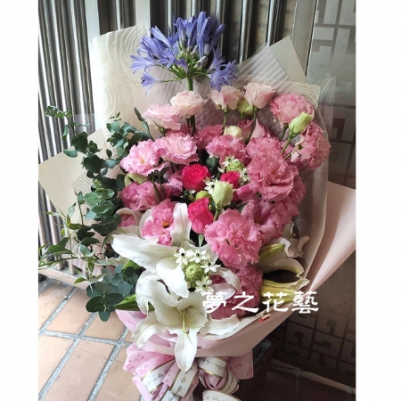 A166 幸福的微笑 百合玫瑰桔梗花束 代客送花 高雄花店代客送花