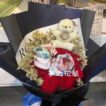 A178 有你真好 鈔票玫瑰花束 傳情花束 情人節 生日花束 高雄花店代客送花