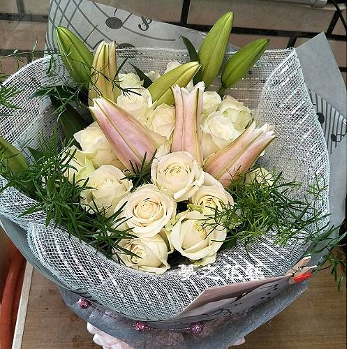 A106 心動 白玫百合花束 情人節花束 生日 高雄花店