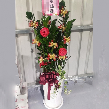 J096 時尚祝賀盆花 店面擺飾設計 乾燥花祝賀盆花 高雄花店